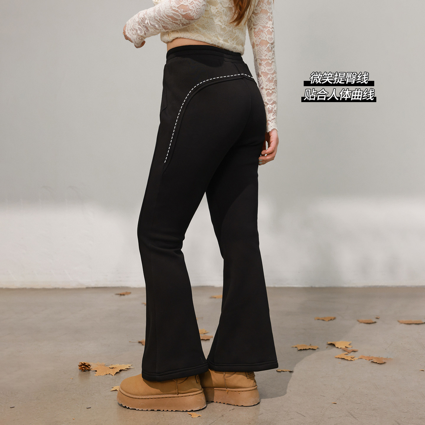 天【四面弹加绒小脚裤】美丽客栈大码女装2025冬新款显瘦黑色休闲裤