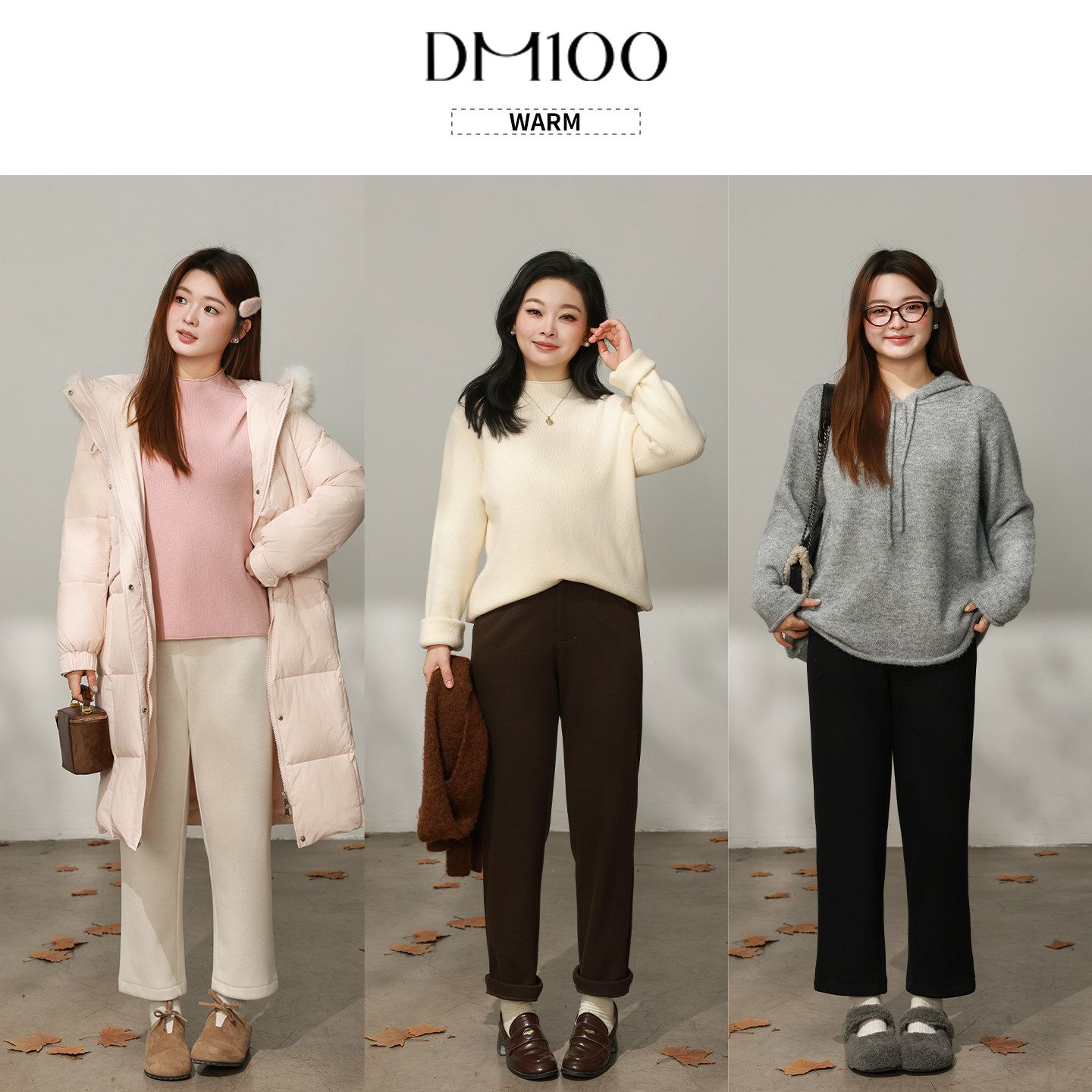 DM100大码百分百女装微胖mm冬季百搭显瘦加绒针织直筒阔腿休闲裤