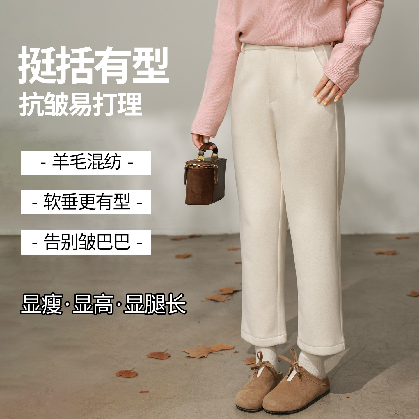 淘宝DM100大码百分百女装微胖mm冬季纯色百搭休闲小脚裤羊毛呢法棍裤