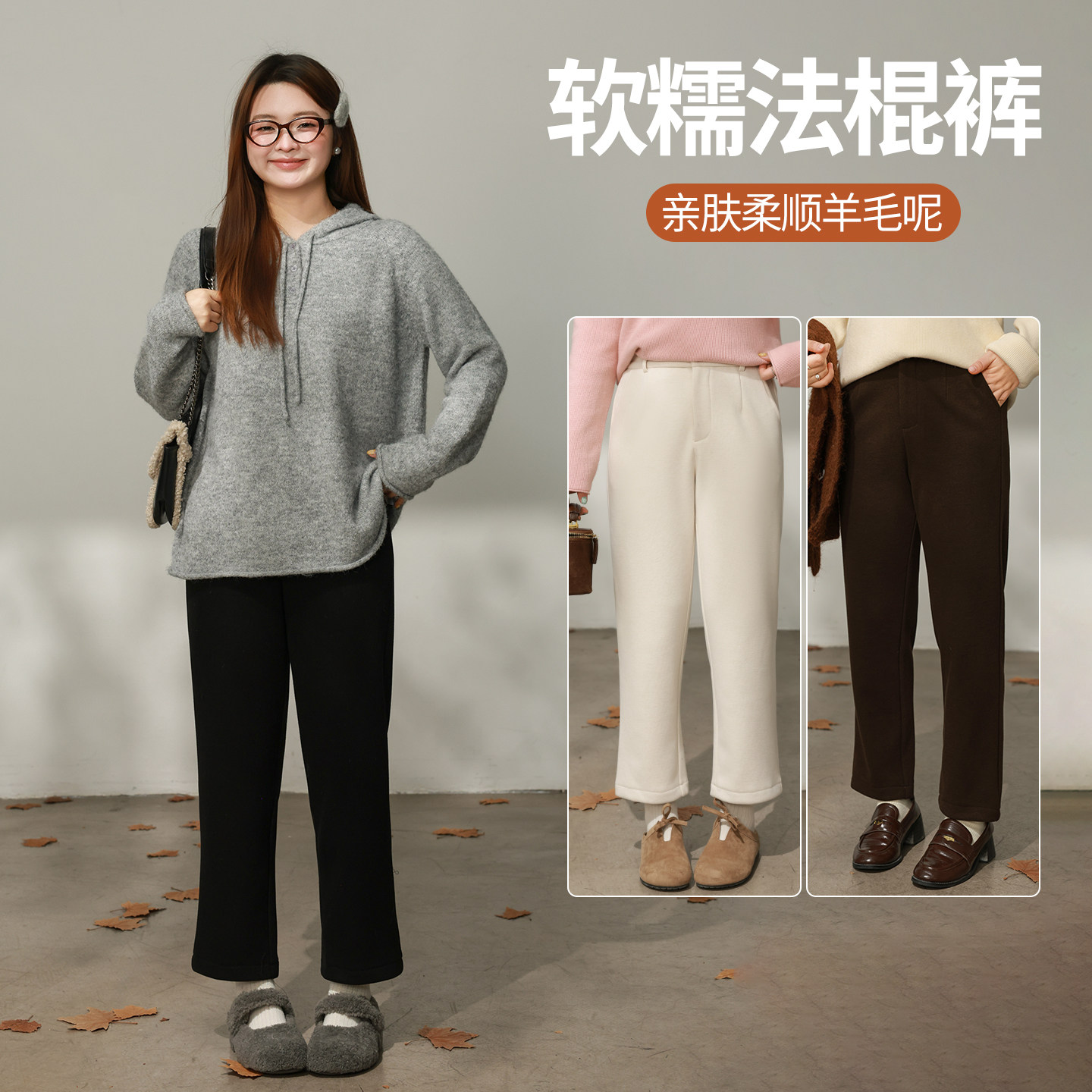 天【奶芙绒】美丽客栈大码女装软糯羊毛直筒裤胖mm显瘦垂感休闲裤子