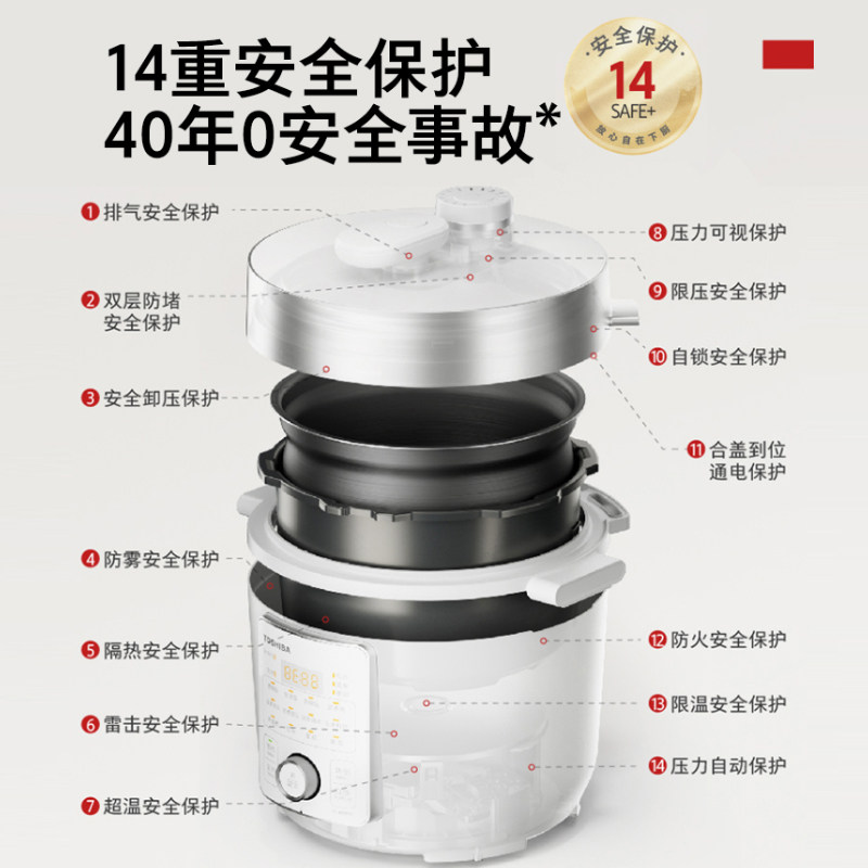 天猫东芝芝味电压力锅家用4.8L大容量电饭煲多功能智能高压锅双胆煲汤