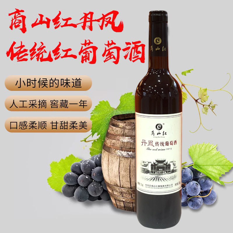 淘宝商山红 丹凤传统红葡萄酒 普酿葡萄酒甜型红酒750ml单支装 非干红