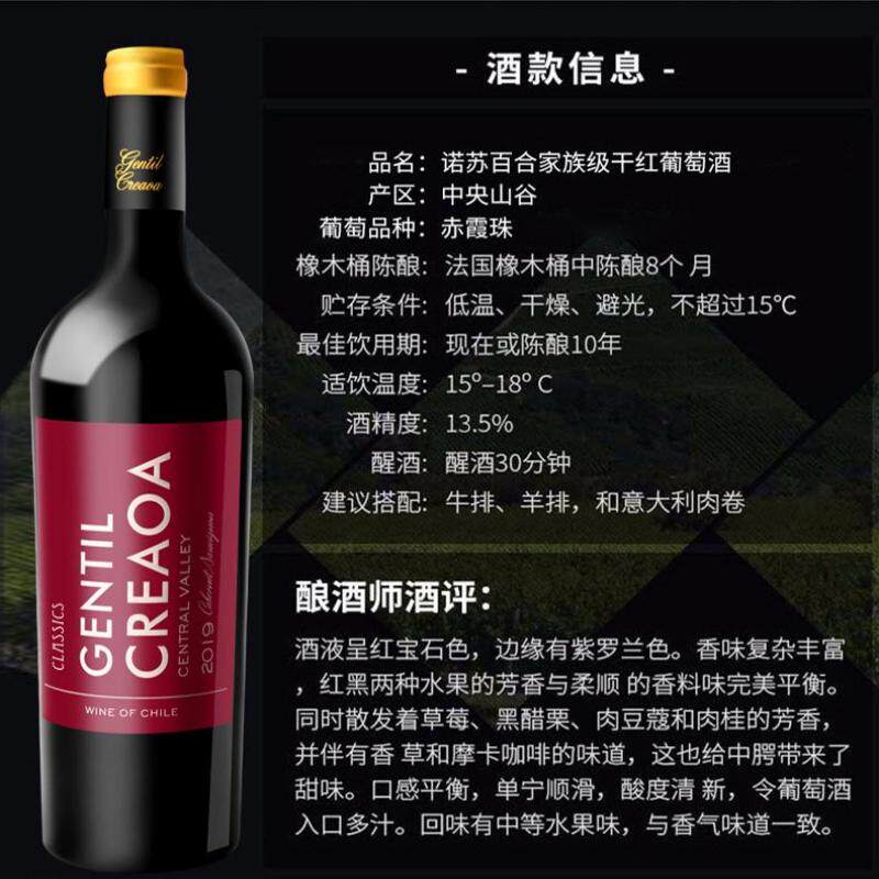 天猫智利中央山谷红酒诺苏百合家族级干红葡萄酒赤霞珠干红葡萄酒