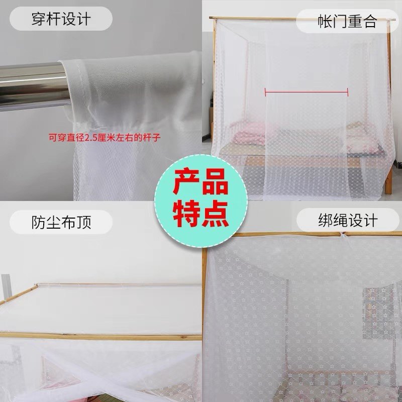 淘宝家用蚊帐单门传统老式床穿杆梅花加厚加密方顶防尘顶1.2米1.5m1.8