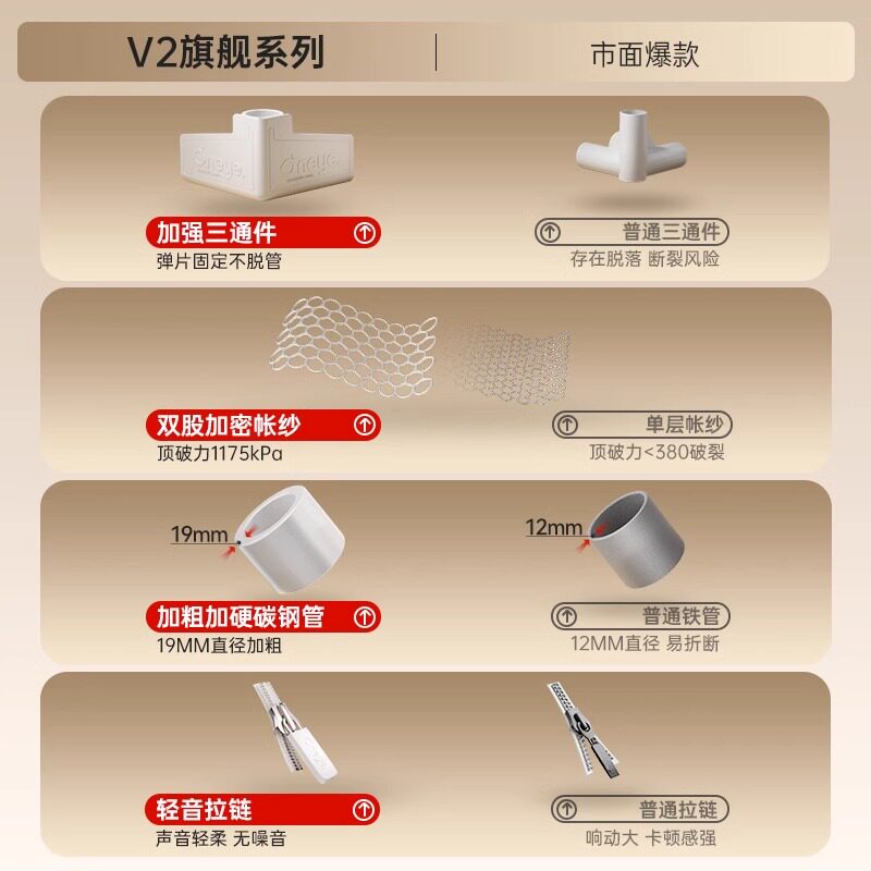 2026丸丫新款V2防摔纹帐,专为婴幼儿设计,集防蚊、防摔、防掉床于一体,守护宝宝安睡每一晚。采用全底无缝设计,紧密贴合床垫,有效防止宝宝滑入床缝,杜绝安全隐患。高密度加密网眼,通风透气同时阻隔蚊虫,让宝宝远离叮咬。独特防摔纹帐结构,搭配加高围挡,防止翻身掉落,提升睡眠安全。安装简便,适配多种床型,可折叠收纳,居家出行皆宜。材质安全环保,亲肤无刺激,通过多项婴幼儿用品检测。丸丫V2蚊帐,以匠心品质为宝宝打造安心睡眠空间,是新手爸妈的贴心之选。