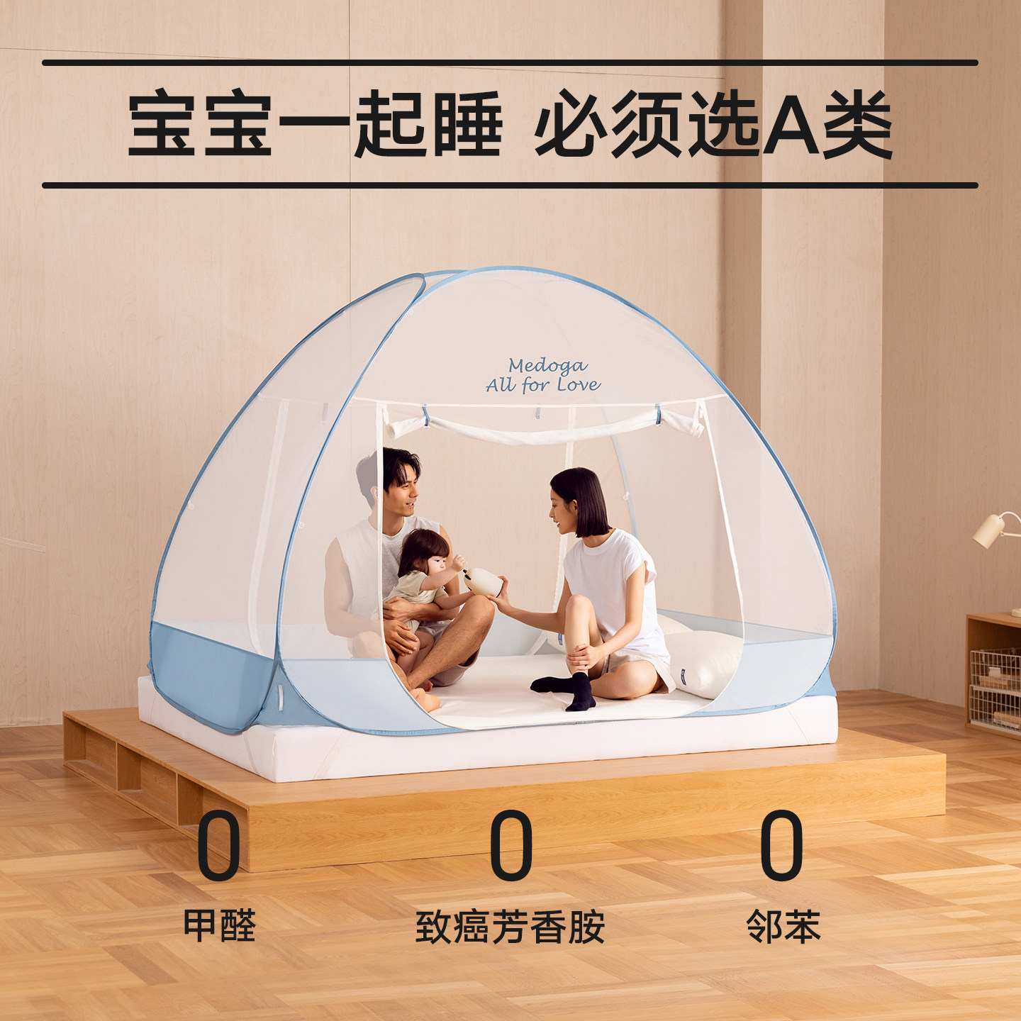 天猫美朵嘉2025新款简约免安装蚊帐卧室家用可折叠双开门蒙古包A类