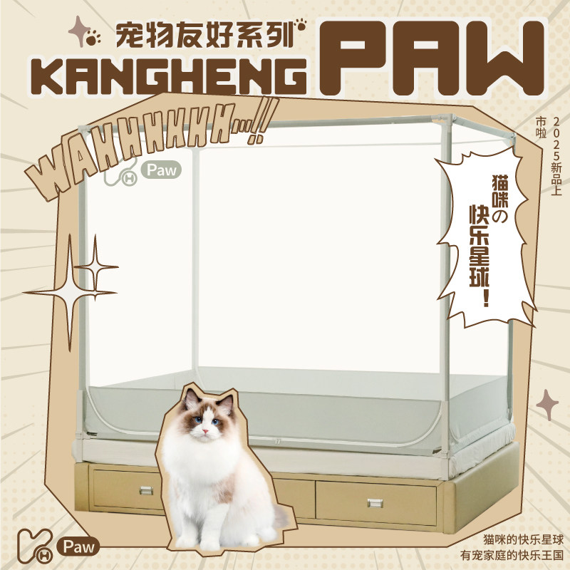 康亨防猫抓蚊帐是一款专为养猫家庭设计的宠物防护神器,有效防止猫咪上床、抓挠床品。采用高强度耐磨防抓面料,结合精细网格结构,既能通风防蚊,又能抵御猫爪撕扯,确保蚊帐持久耐用。顶部设有拉链或绑带设计,方便进出,同时防止猫咪钻入。安装简单,适配多种床型,兼顾实用性与美观。不仅能保护床铺清洁,还能避免猫咪打扰主人睡眠,营造人宠共居的和谐空间。无论是防止猫爬床,还是避免抓坏蚊帐,康亨防猫抓蚊帐都是养猫家庭的贴心之选,让爱宠与舒适睡眠兼得。
