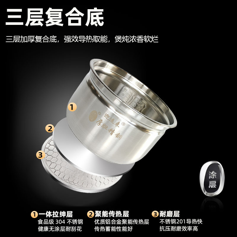 通用美的半球雅乐思电压力锅配件——304不锈钢内胆,容量为5L/6L,适配多款主流品牌电压力锅型号。采用食品级304不锈钢材质,安全无毒、耐腐蚀、易清洁,有效保障食材原味与健康。内胆设计合理,加厚底部导热均匀,提升烹饪效率。配套食品级蒸格,可分层蒸煮,实现一锅多菜,满足多样化烹饪需求。蒸格采用优质不锈钢制作,结构稳固,耐高温不变形。整体配件精工细作,密封性好,耐用性强,是家庭厨房的理想之选。无论是煮饭、炖汤还是蒸菜,都能轻松应对,为您的健康饮食保驾护航。