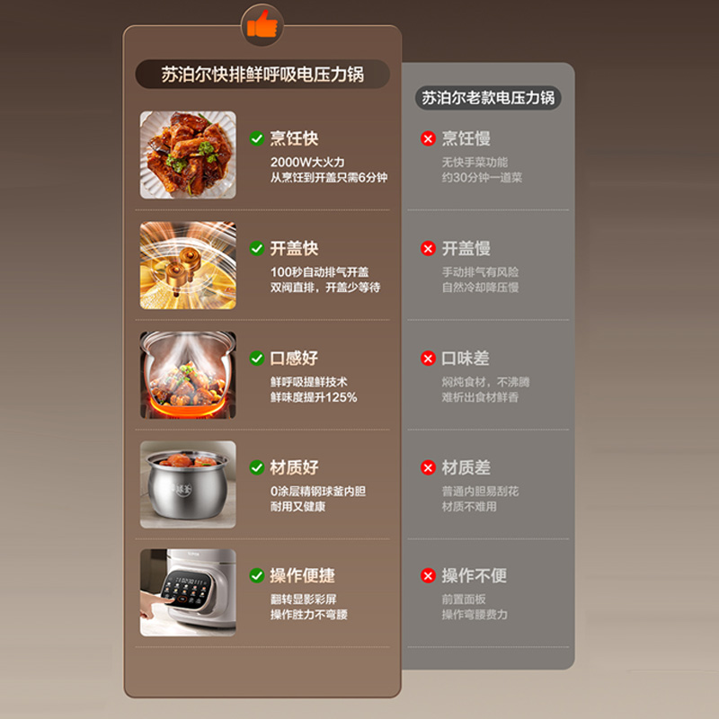 天猫苏泊尔电压力锅家用智能5L大容量深釜双内胆多功能鲜呼吸电高压锅