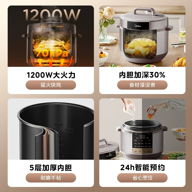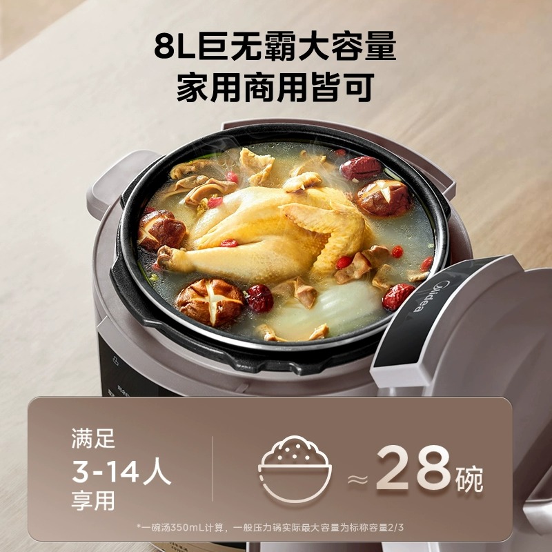 美的电压力锅家用8L多功能大容量高压锅饭煲全自动深汤电高压锅