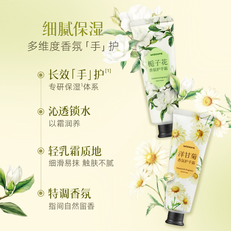 天猫屈臣氏香氛护手霜保湿滋润补水手足修护樱花洋甘菊栀子花新旧随机