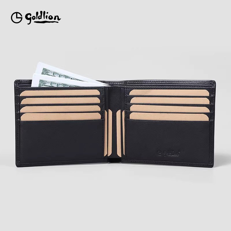 天金利来钱包男士短款薄款真皮头层牛皮商务横款短款零钱夹简约皮夹