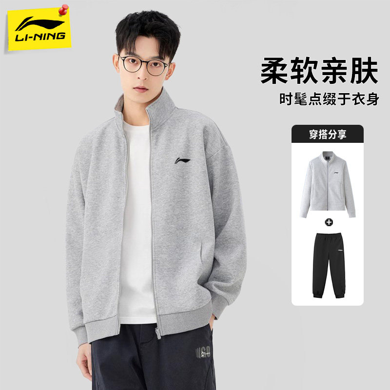 淘宝李宁男装春秋季运动开衫卫衣2025新款青少年男士立领休闲外套上衣
