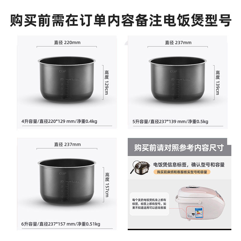 淘宝适用美的电压力锅内胆4L5L6升通用不粘锅加厚高压锅内锅配件大全