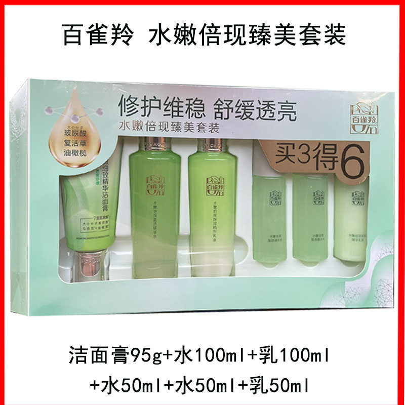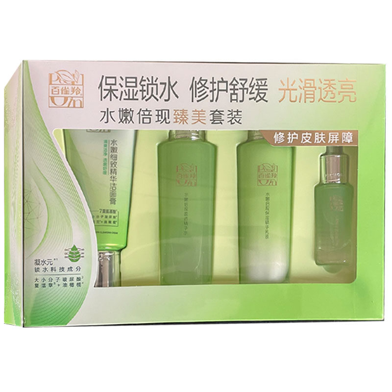 淘宝百雀羚水嫩倍现臻美套装礼盒精华水乳液洁面膏眼部精华液补水保湿