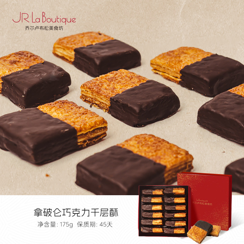 【禧物社】JR乔尔卢布松蝴蝶酥拿破仑千层酥巧克力味,融合法式匠心与东方巧思,打造高端办公室伴手礼之选。精选优质黄油与浓郁巧克力,层层酥脆,入口即化,甜而不腻。蝴蝶酥造型优雅,拿破仑千层酥层次分明,每一口都尽享奢华口感。包装精致典雅,寓意吉祥美满,既适合商务馈赠,也宜于同事分享,传递心意与品味。作为【禧物社】匠心之作,不仅满足味蕾享受,更彰显送礼者的格调与诚意,是现代办公场景中的理想伴手礼,让每一次分享都成为美好回忆。