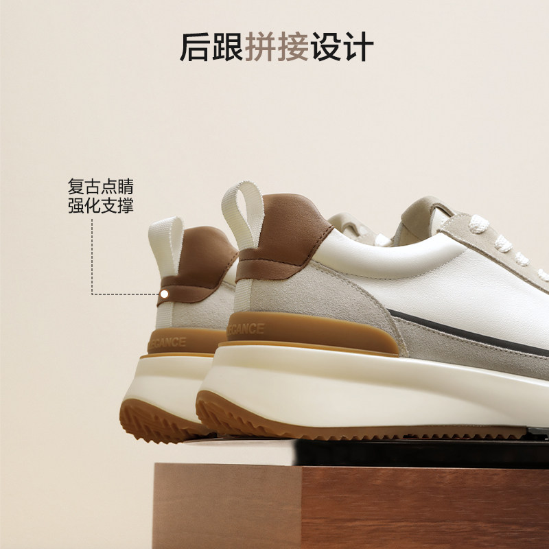 百丽男士复古休闲跑步运动阿甘德训板鞋(型号A2300AM6)是2026年春季推出的新款厚底鞋,融合经典德训鞋型与现代运动科技。鞋面采用优质皮革与透气织物拼接,质感出众且舒适耐穿。复古设计搭配撞色车线,彰显低调时尚感,厚底造型不仅提升视觉比例,更提供良好缓震支撑,适合日常通勤、休闲出行及轻度运动。鞋底防滑耐磨,行走稳健。整体风格百搭,轻松驾驭街头、校园或轻户外场景,是追求舒适与潮流兼备的男士理想之选。百丽匠心工艺,演绎经典与创新的完美平衡。