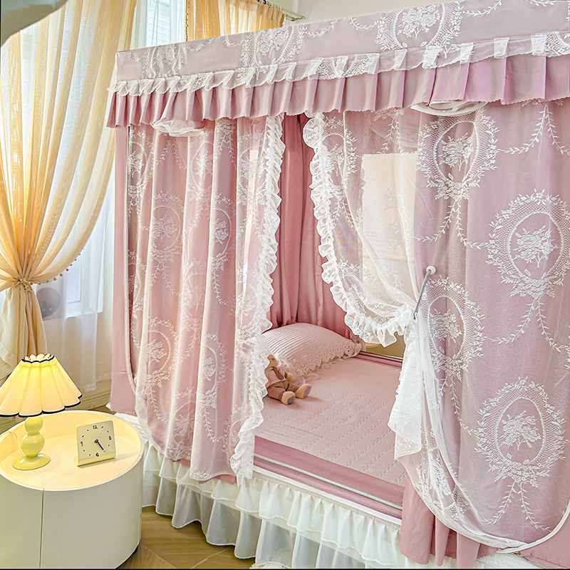 洁丽雅落地蚊帐三开门宫廷风床幔加厚支架宿舍家用卧室床帘夏季