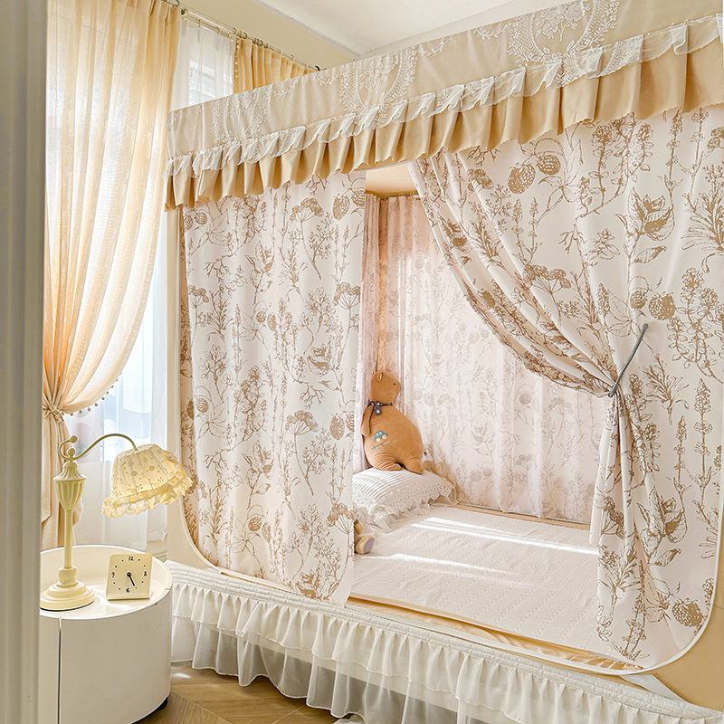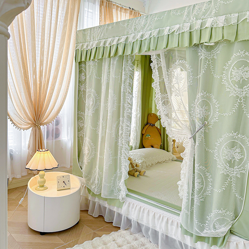 慕兮新款莱妮法式宿舍床帘u型轨道上下铺大学生寝室遮光蚊帐一体