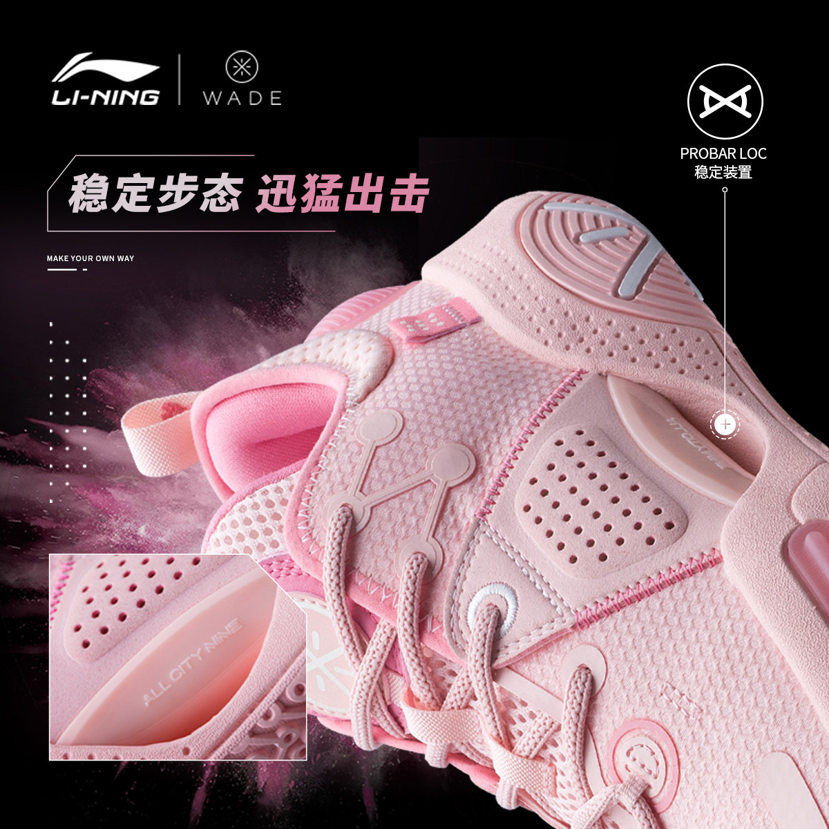 李宁全城9篮球鞋是韦德之道系列全新推出的实战利器,专为追求速度与爆发力的球员打造。鞋面采用轻质透气MONO纱材质,兼顾支撑与舒适;中底搭载李宁独家“BENG”高回弹科技,提供强劲能量反馈,助力每一次突破与起跳。外底运用耐磨橡胶搭配多向纹路设计,增强抓地力与耐久性,适应室内外多种场地。全城9延续韦德之道经典设计语言,融合时尚外观与专业性能,是实战与潮流兼具的优选战靴,助力球员在球场上 confidently 展现全能表现。