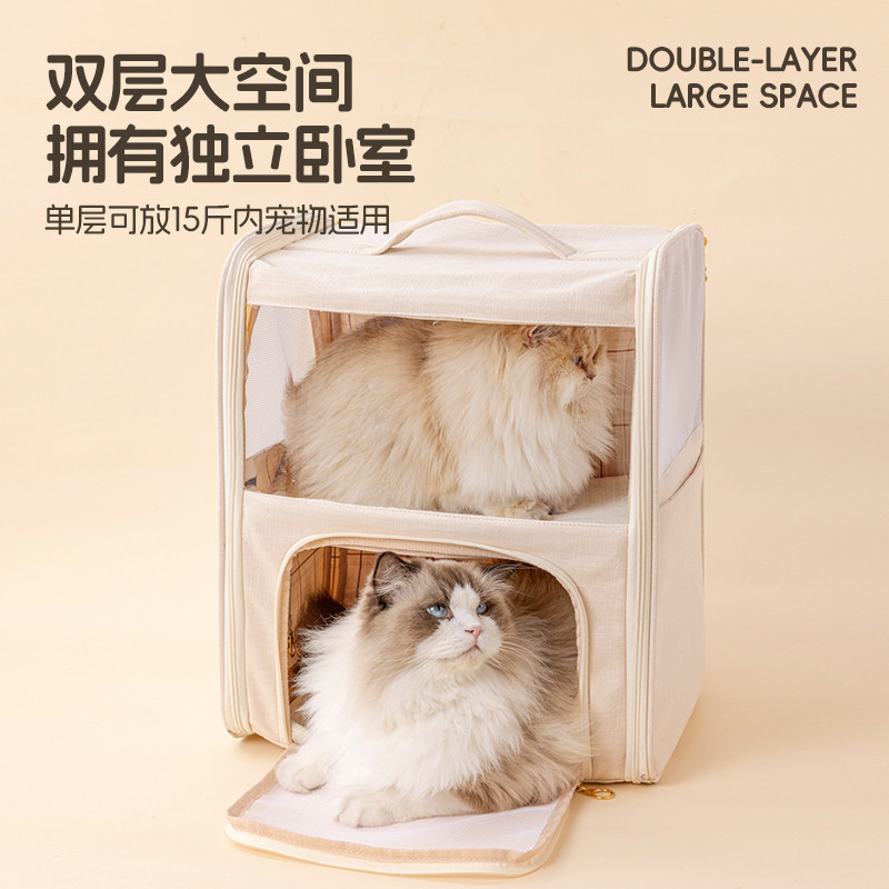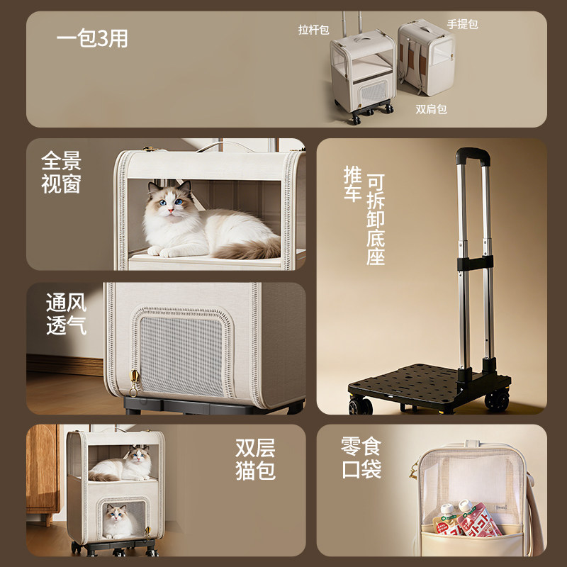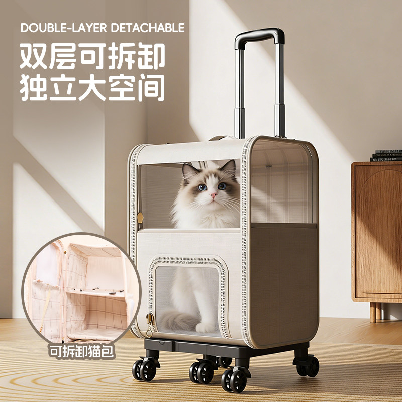 天猫猫包拉杆箱双层宠物双肩包外出便携大容量猫行李箱透气猫咪小拖车
