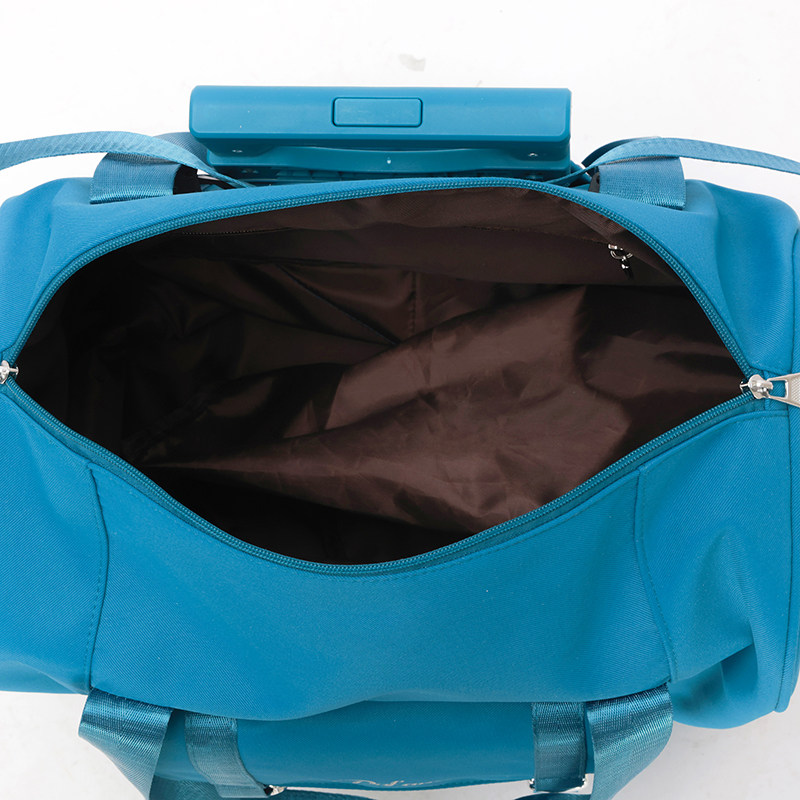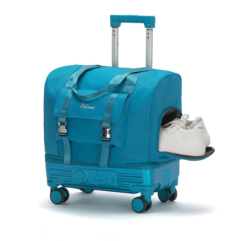 这款女士旅行包集大容量、轻便与实用于一体,专为现代出行设计。采用高强度耐磨面料,结实耐用,内部空间宽敞,分层合理,轻松收纳衣物、鞋履及随身物品。配备360°静音万向轮,推拉顺滑,转向灵活,轻松应对机场、车站等复杂路况。可折叠设计,不用时可压扁存放,节省空间。拉杆高度可调节,符合人体工学,长时间推行也不累。提手与拉杆双重设计,满足不同场景需求。无论是短途旅行、出差还是购物,这款带轮子的拉杆行李袋都能让出行更轻松便捷,是女性旅行者的理想伴侣。