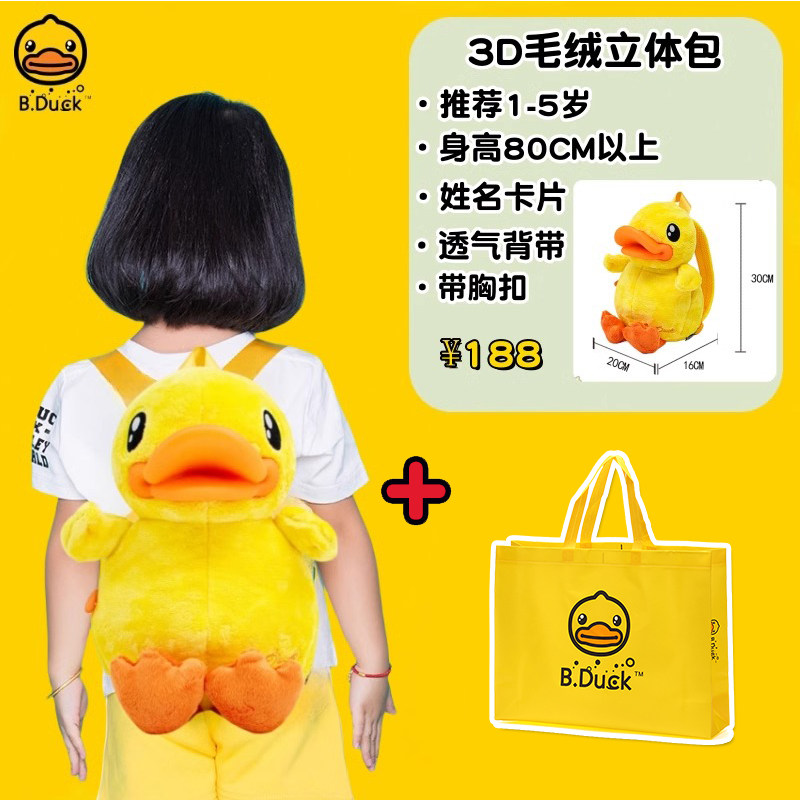 淘宝B.Duck小黄鸭书包可爱立体毛绒鸭潮牌宝宝儿童双肩包卡通休闲背包