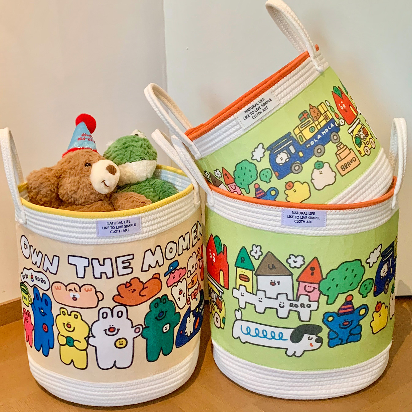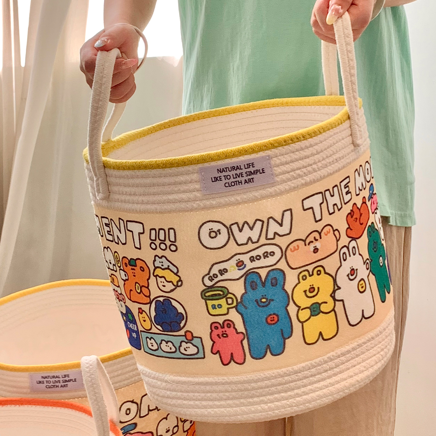 淘ins风棉绳编织收纳篮桌面零食杂物整理盒化妆品收纳筐家用大容量