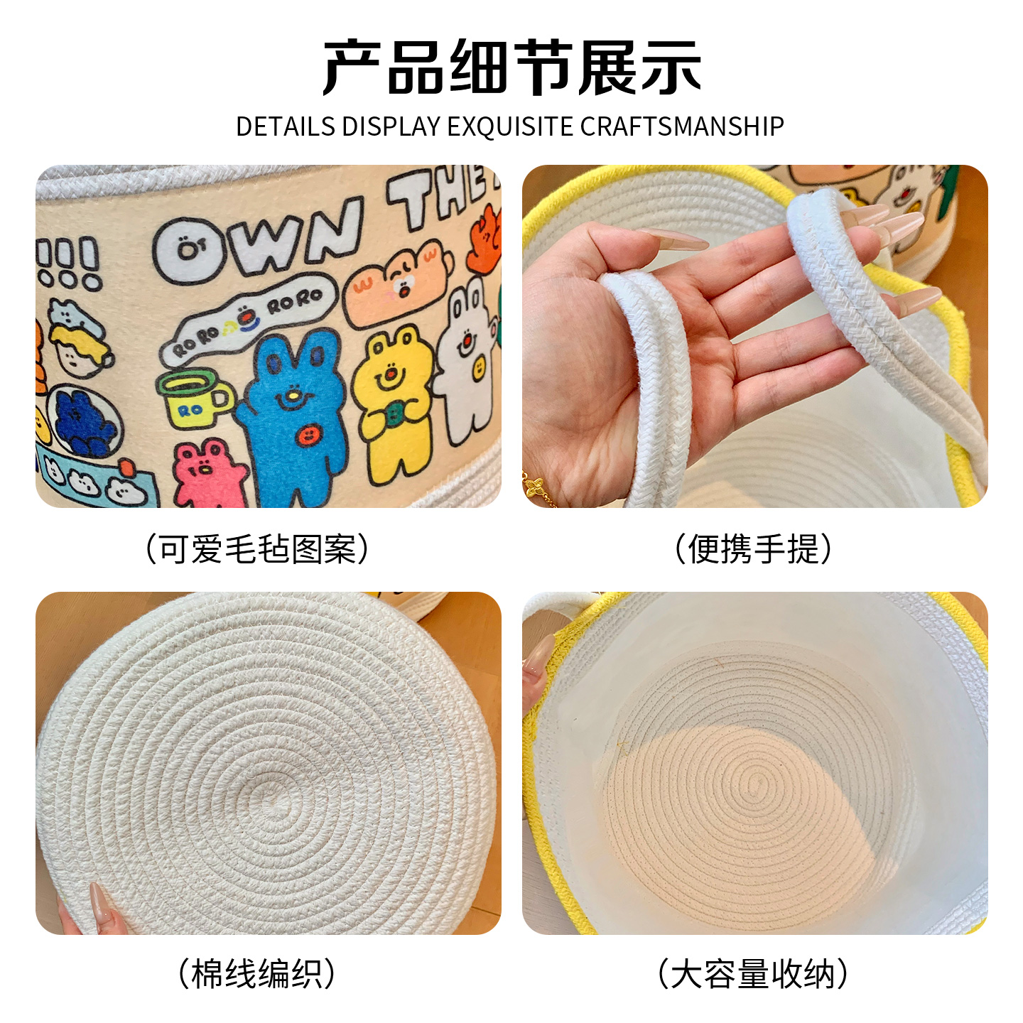 ins风棉绳编织收纳篮桌面零食杂物整理盒化妆品收纳筐家用大容量