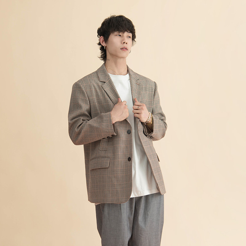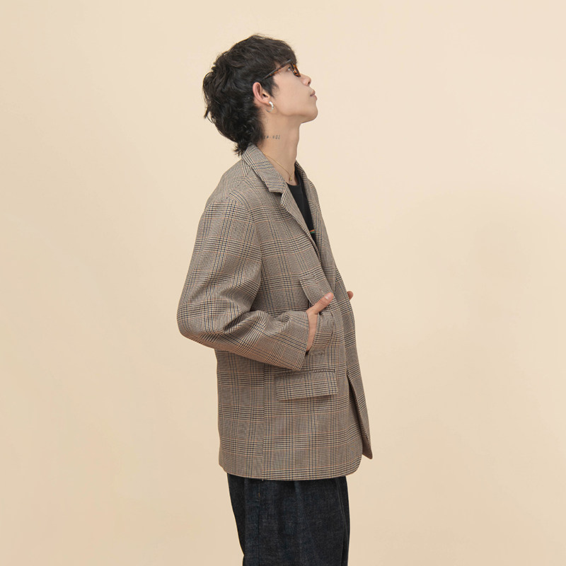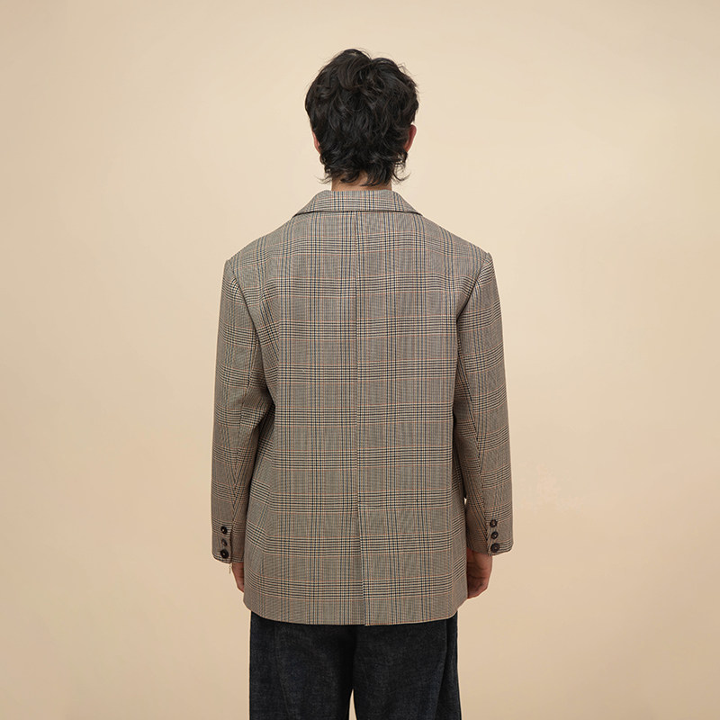 天猫HalfwayHouse2025年冬季日系复古简约格子羊毛外套休闲百搭西装男