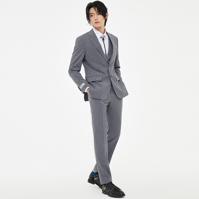 威可多男士西服上衣羊毛材质商务正装外套深灰色结婚礼服