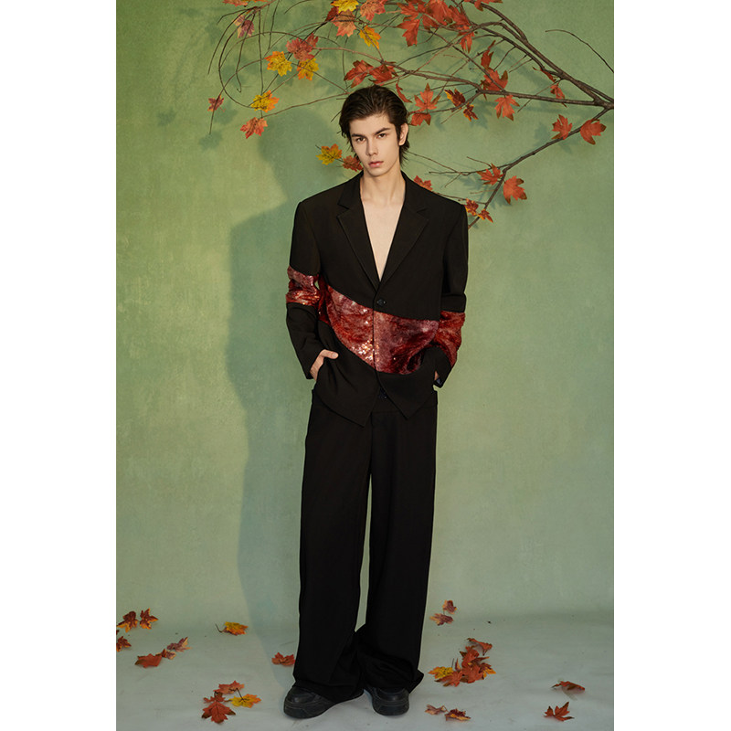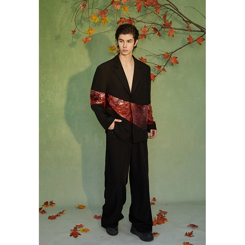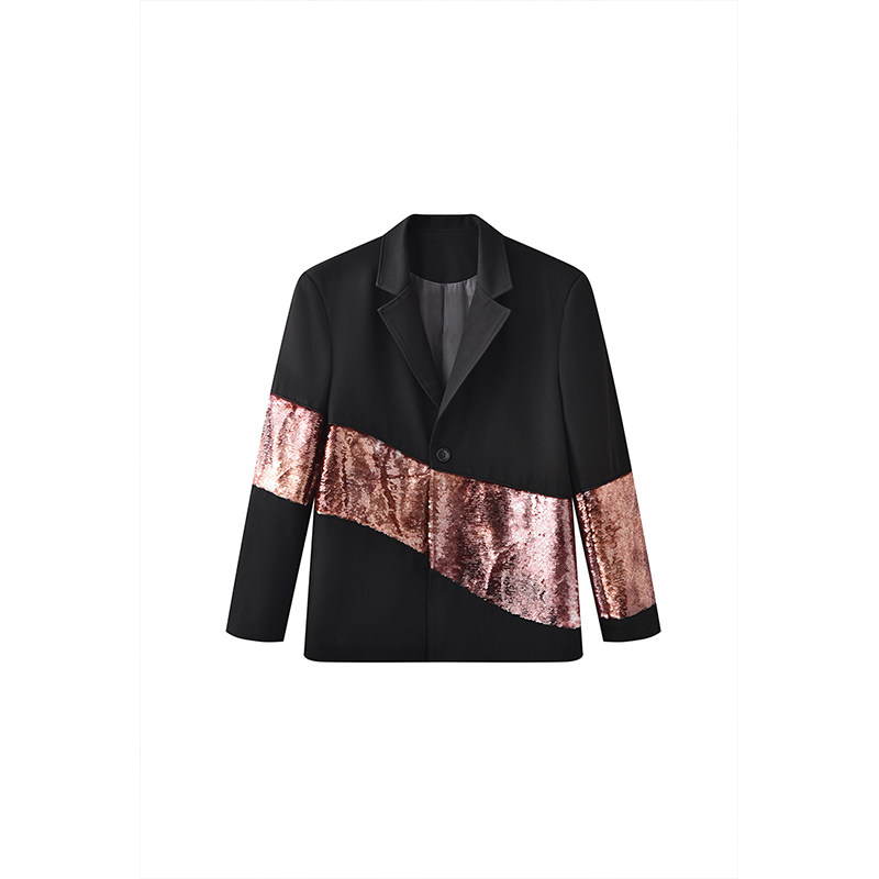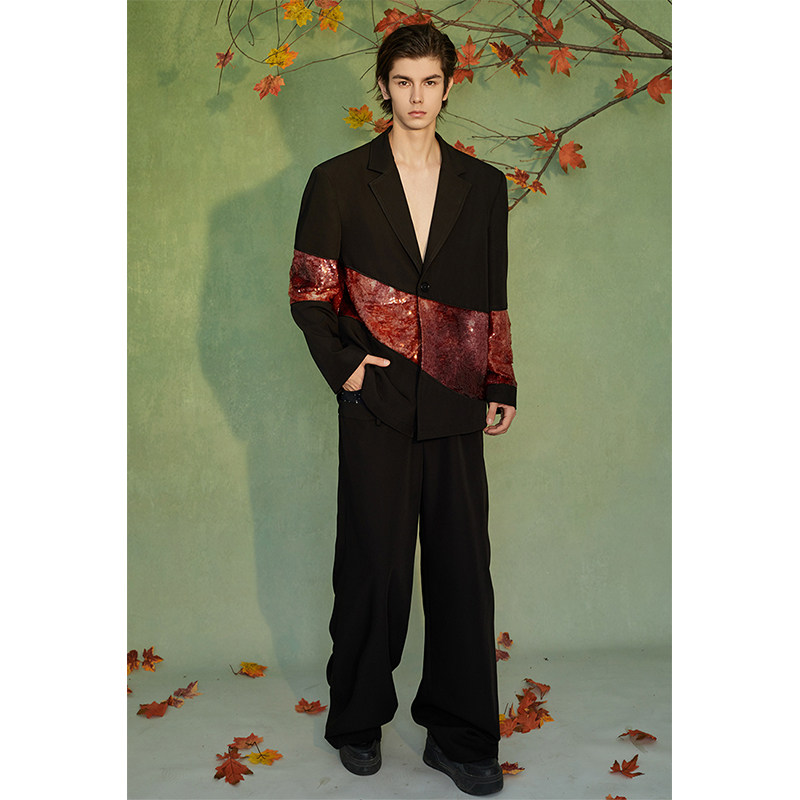 淘设计感小香风亮片西装外套男生秋季新款痞帅炸街宽松潮牌新年男装