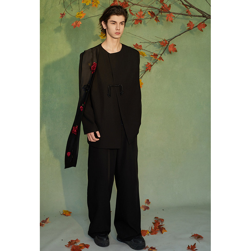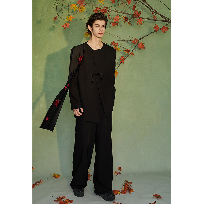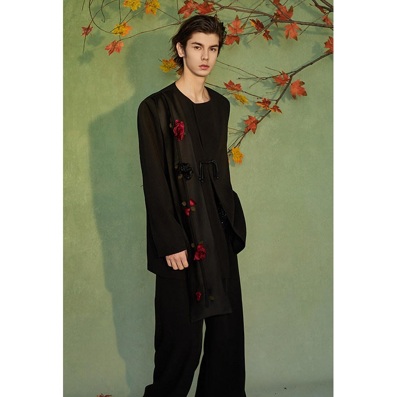 淘宝介尺JIECHI「夜曲红玫」新中式盘扣休闲宽松西服外套男高级感西装