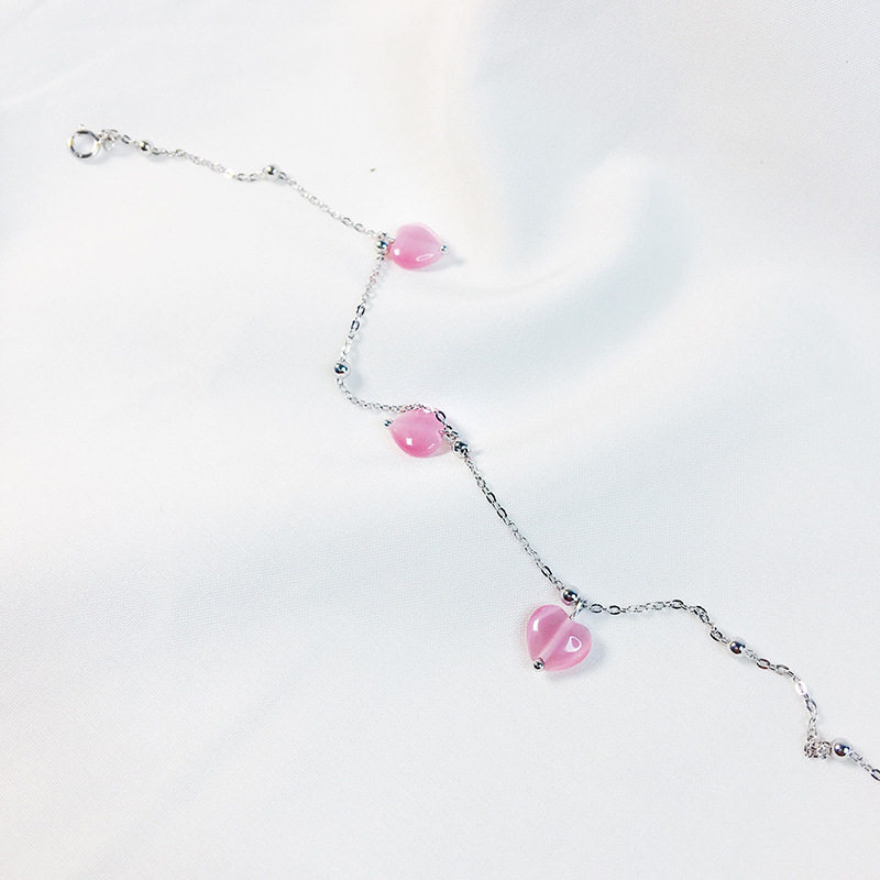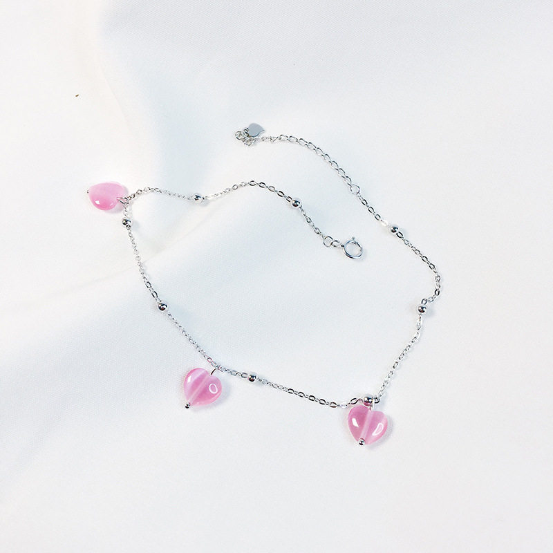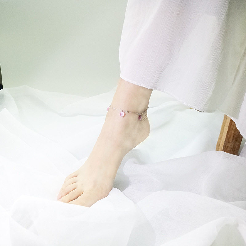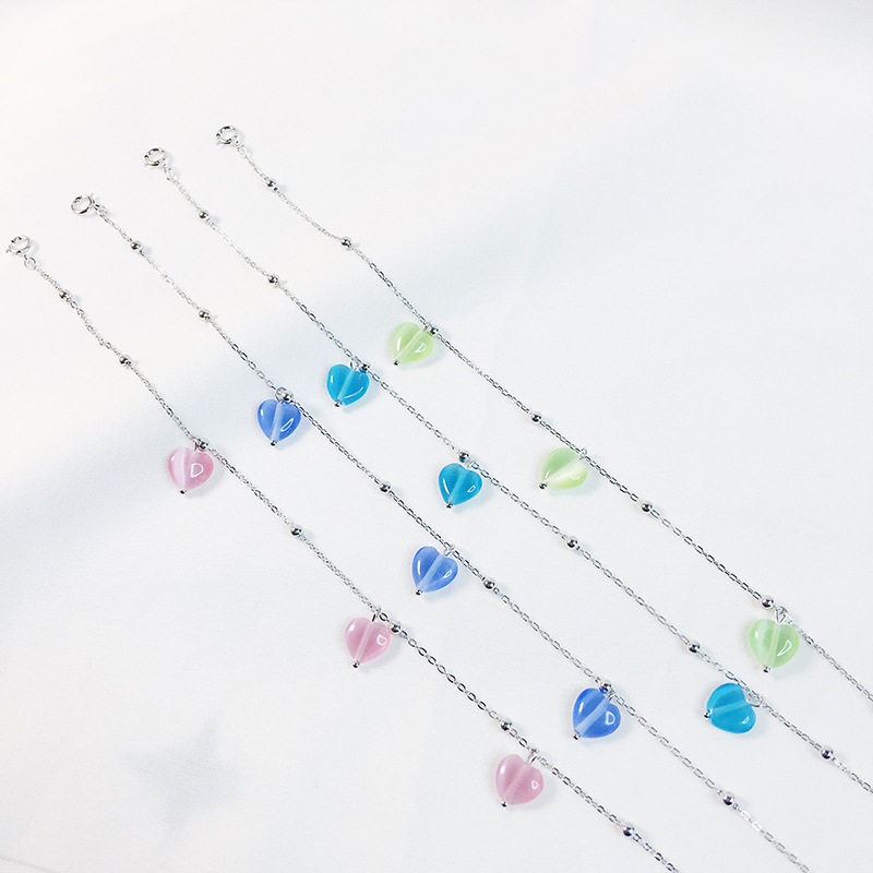 淘宝s925纯银爱心猫眼石脚链女心形细款脚饰夏季百搭学生少女配饰代发