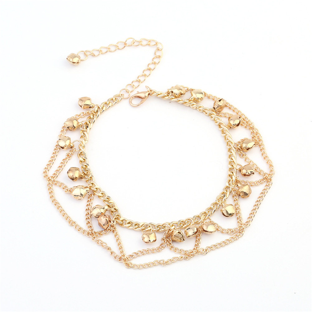 脚链夏季沙滩新款 圆珠链爱心桃心双层脚饰链亚马逊跨境热销脚链