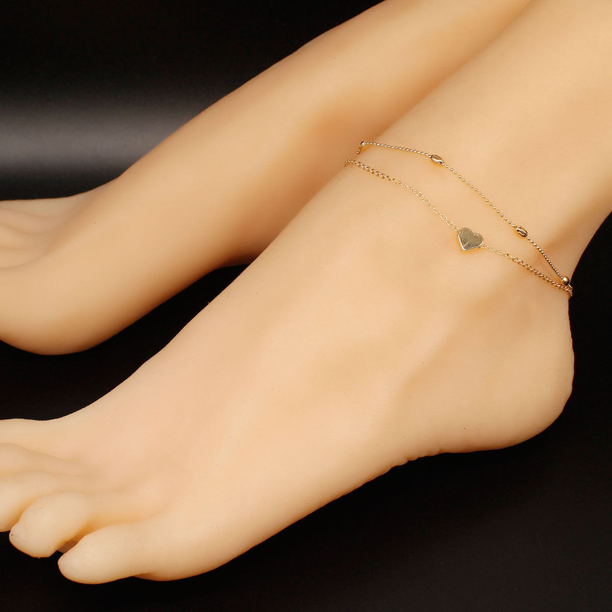 淘宝脚链夏季沙滩新款 圆珠链爱心桃心双层脚饰链亚马逊跨境热销脚链