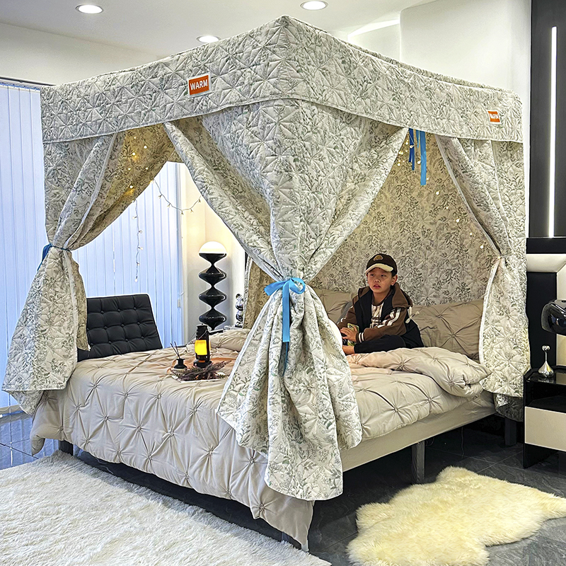 天猫冬季儿童遮光床帘蚊帐床上秋冬保暖防风防寒加棉加厚成人夹棉帐篷