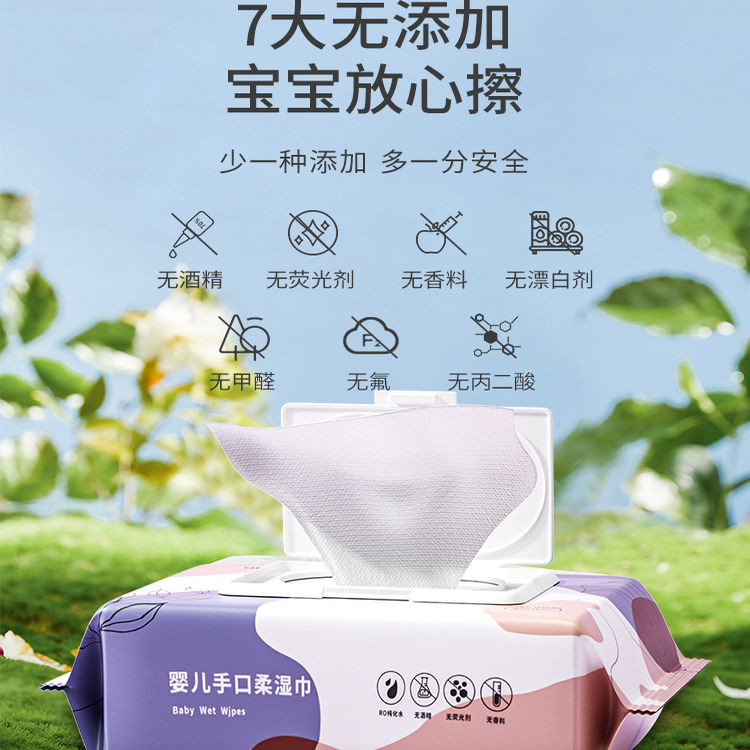 湿巾手口湿巾植物纤维清洁无敏配方婴儿湿巾加厚柔软亲肤比纸好用