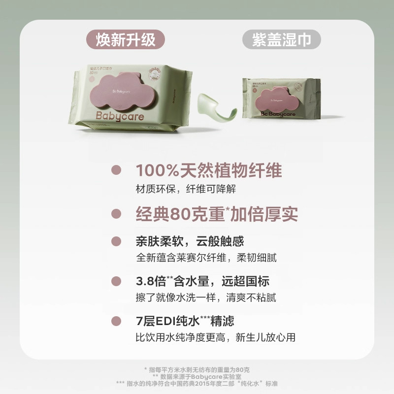 babycare高端紫盖超厚手口湿纸巾系列婴儿湿巾湿巾纸