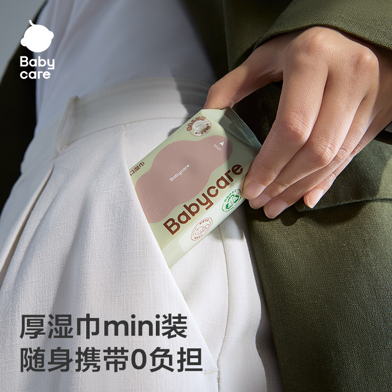 【U先】babycare婴儿手口湿巾便携装,专为外出设计,小巧轻便,6抽/10抽多种规格,轻松放入妈咪包或口袋。采用加厚柔软无纺布,触感细腻,亲肤不刺激,特别适合宝宝娇嫩肌肤。成分纯净,不含酒精、香精、荧光剂,通过安全检测,可安心用于擦拭宝宝手口、脸部及餐具。独立密封贴设计,锁水防干,持久保湿。无论是旅行、逛街还是日常带娃,都是贴心好帮手。让清洁更便捷,呵护宝宝每一刻的洁净与健康,是新手爸妈出行必备的理想选择。