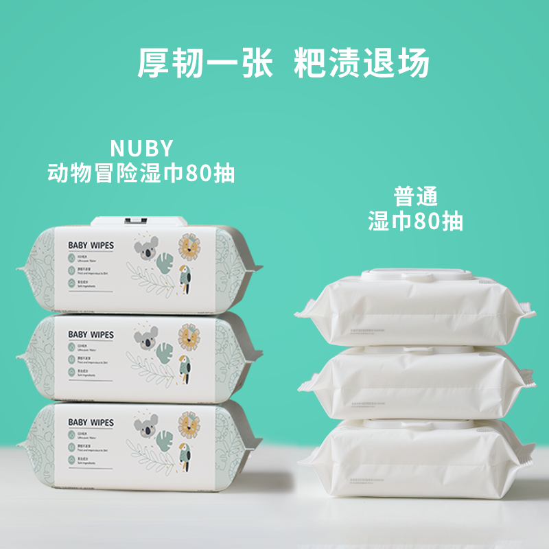 天猫【自营】Nuby努比动物冒险绵柔湿巾婴儿手口湿纸巾新生儿湿巾80抽