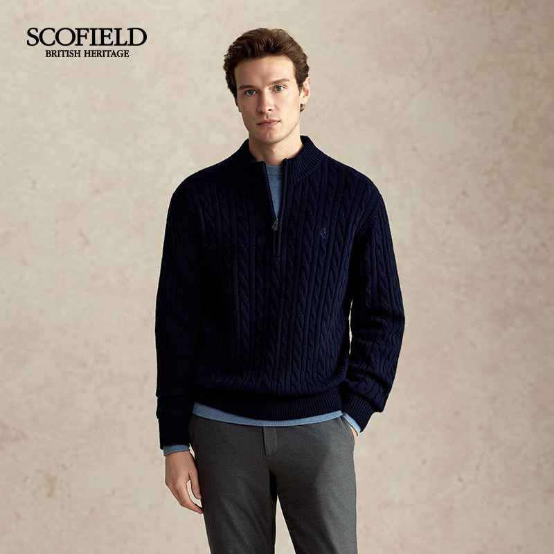 天猫【山羊绒】SCOFIELD男装秋冬新款羊毛混纺毛衣简约纯色立领针织衫
