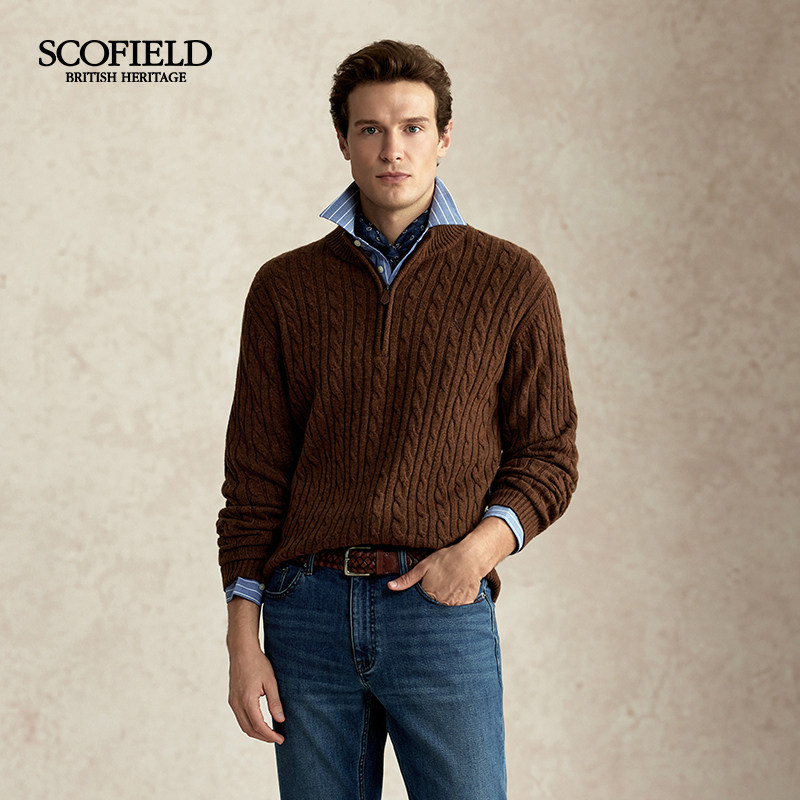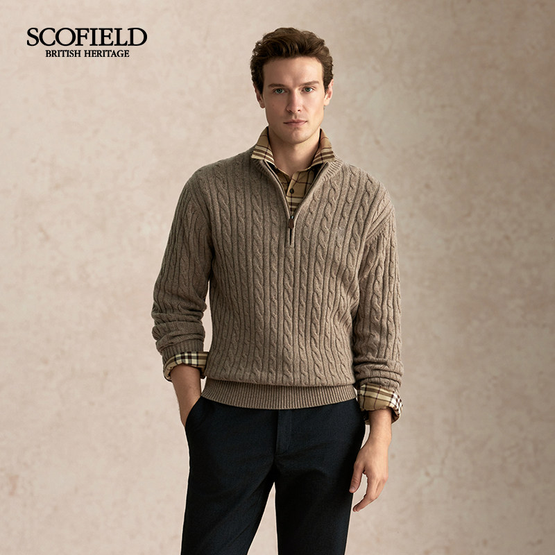 SCOFIELD男装2023秋冬新款山羊绒羊毛混纺毛衣,采用优质山羊绒与精纺羊毛混织而成,触感细腻柔软,保暖性卓越。简约纯色设计,彰显低调优雅的都市格调,立领剪裁利落有型,贴合颈部线条,兼顾防风与时尚感。针织工艺精湛,版型修身而不紧绷,适合多种体型穿搭。无论是搭配西裤打造商务休闲风,还是与牛仔裤组合呈现随性风格,皆能轻松驾驭。这款针织衫集舒适、质感与实穿性于一体,是男士秋冬衣橱的理想之选,诠释现代精英的精致生活态度。