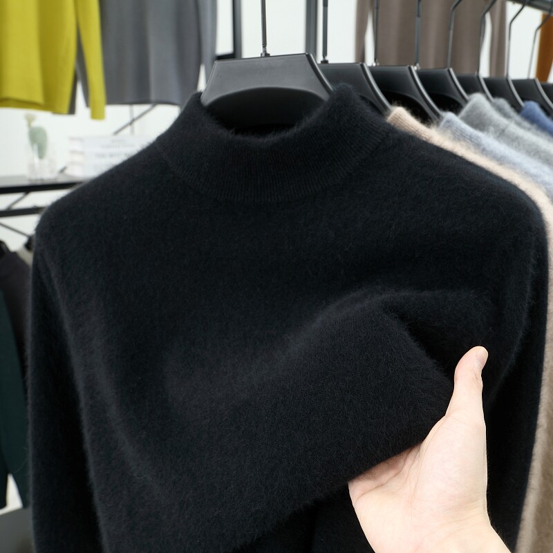 淘半高领羊绒毛衣男装2023秋冬季羊毛绒长袖打底针织衫宽松中领加厚
