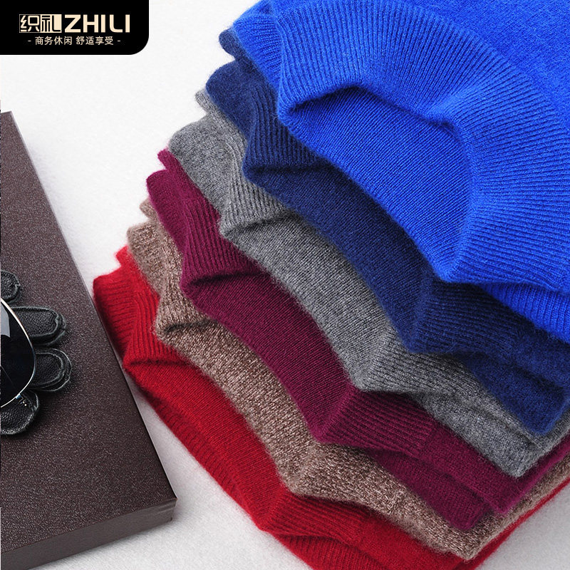 淘鄂尔多斯市100%山羊绒衫男高领加厚保暖羊毛衫中青年休闲针织毛衣
