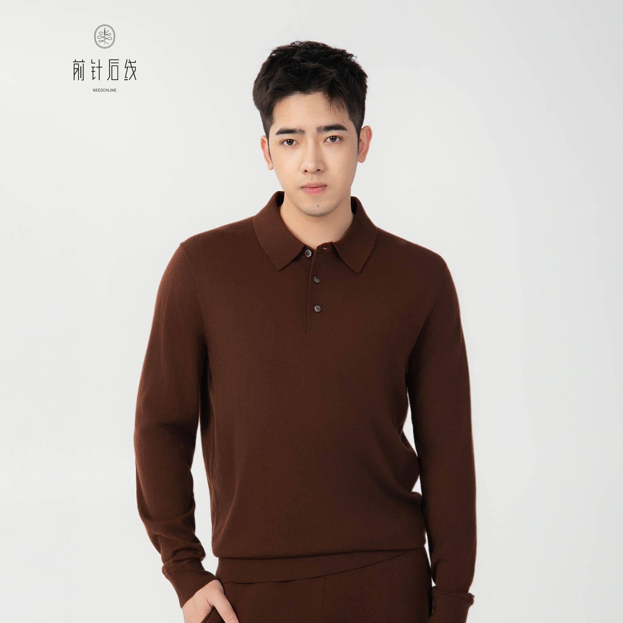 天猫【可机洗】100%纯羊绒翻领长袖高品质男士羊绒POLO衫秋冬男装保暖