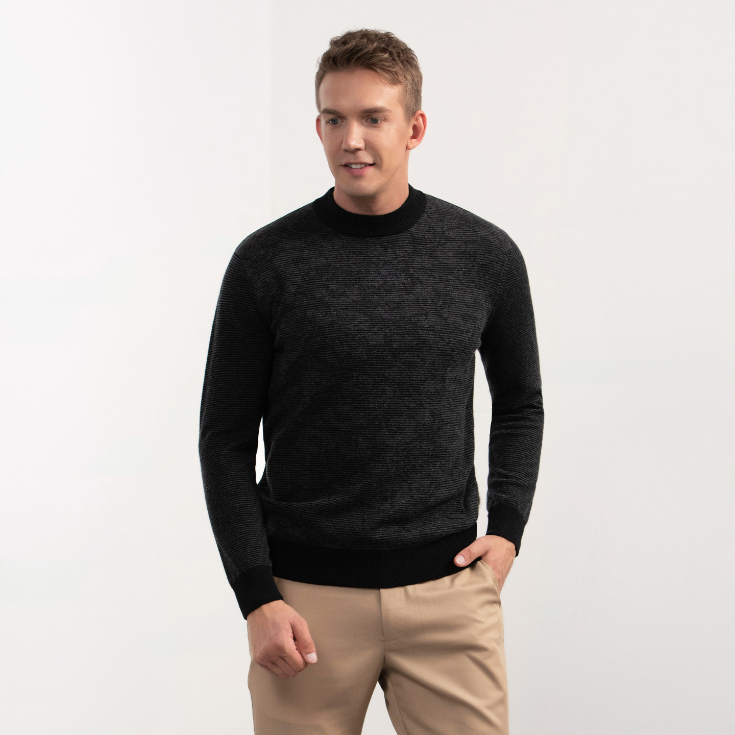 GOBI戈壁秋冬柔软时尚保暖纯羊绒男士圆领针织衫毛衣内搭MK219