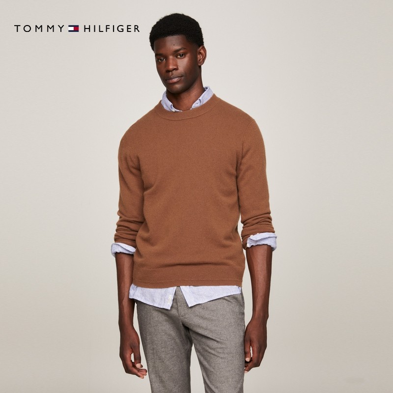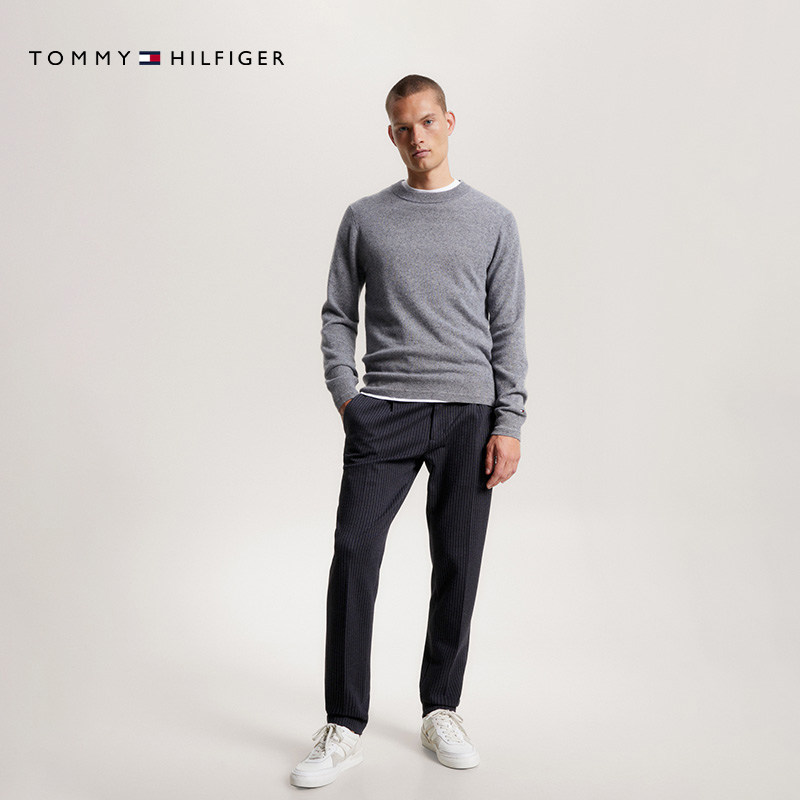 天猫Tommy秋冬男装商务休闲通勤纯色圆领内搭打底衫羊绒衫针织衫毛衣