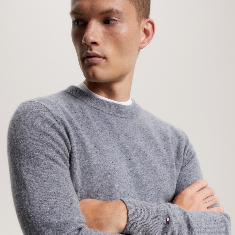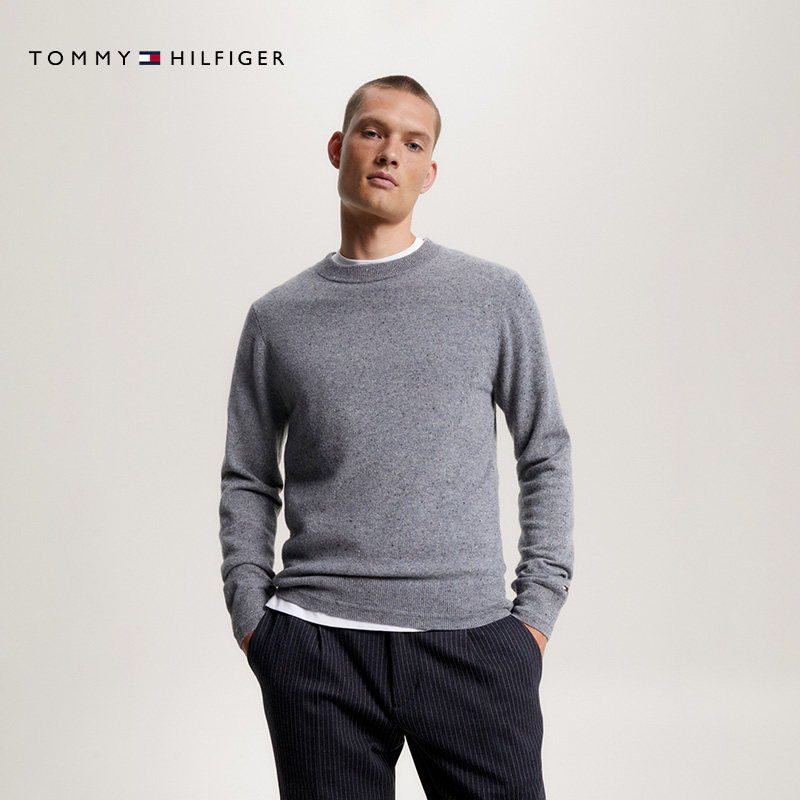 Tommy秋冬男装棉羊绒混纺休闲通勤纯色圆领内搭打底衫针织衫毛衣