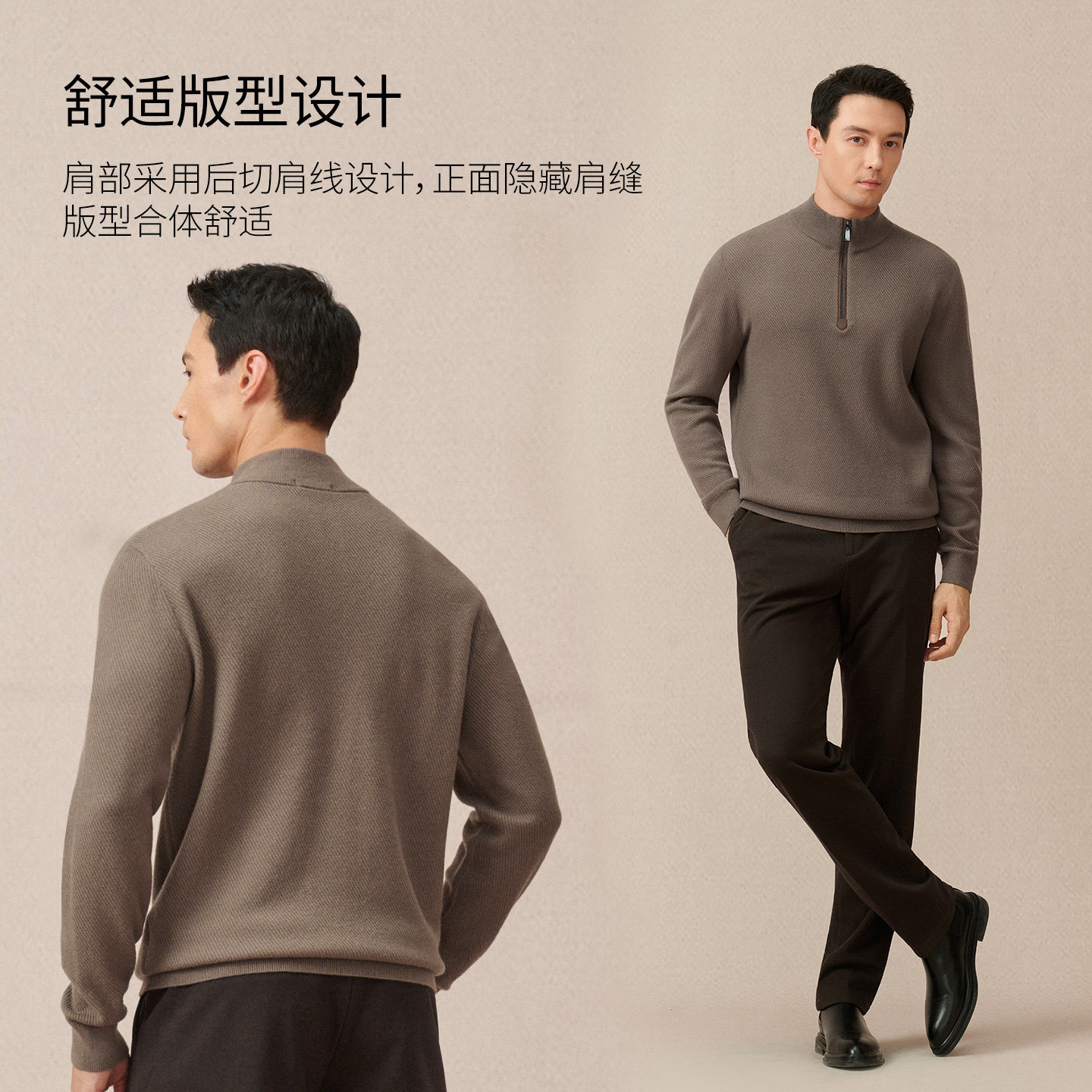 秋冬新款100%纯山羊绒衫男士半高拉链保暖中青年大码针织套头毛衣